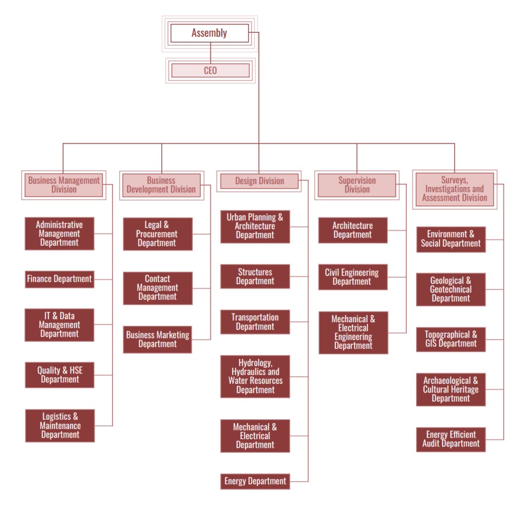 ICE is organized into 8 highlighted departments: Transportation, Water Resources, Environment, Building Science, Hydropower, Oil & Gas, Geotechnics & Underground Structures, and Photovoltaics. ICE has been a distinguished companion of all the recent changes in Albania and developed new ideas to the respective Albanian market. Since its establishment ICE has designed highways, motorways, rural roads, HPP-s, outstanding penstocks with water pressure up to 1000m, supervised more than 1500 km of road construction, supervised the largest motorway project in Albania, has been involved in the design review of 212 km pipeline and compressor stations for the TAP project, designed and supervised various objects of different typologies such as residential building, schools, hospitals, resorts, industrial facilities, institutional buildings and has contributed in significant landmarks near the Capital of Tirana City such as the Central Great Mosque of Namazgah, new tower of Tirana International Hotel, revitalization of Pyramid, all located in 2 square kilometers around the center of Tirana.